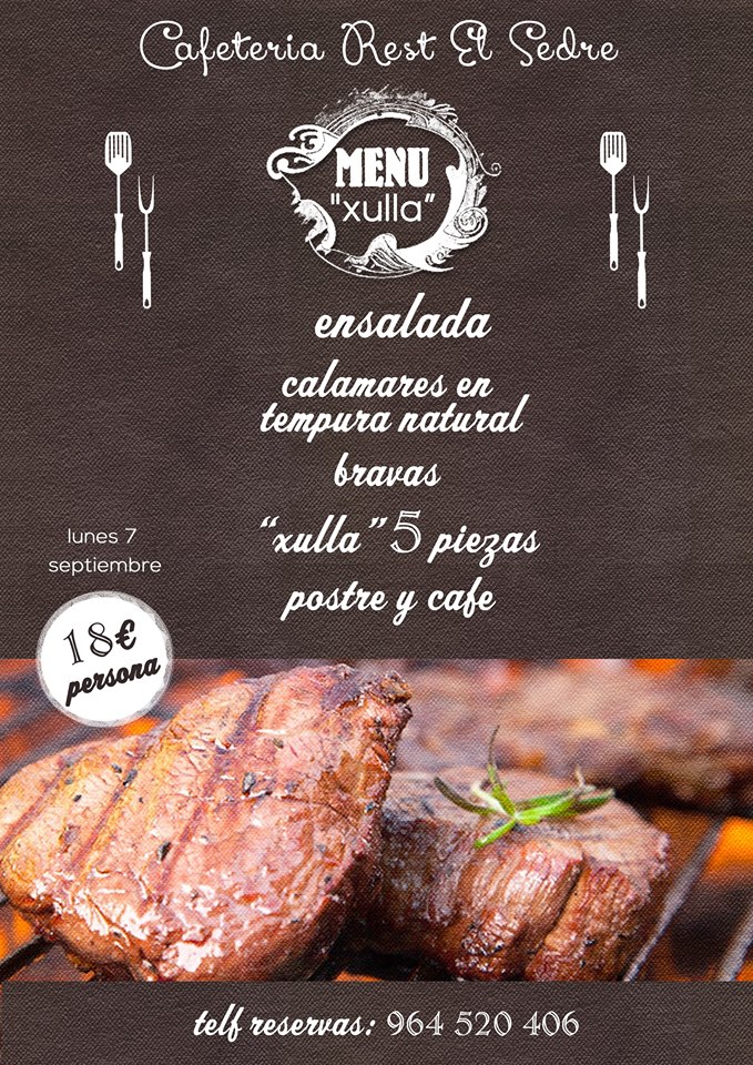 ¿No tienes peña? ¿Tienes, pero prefieres que cocinen por ti? Si quieres disfrutar de la mejor «xulla» en el corazón de las fiestas de la Mare de Déu de Gràcia, reserva ya plaza en la Cafetería Rte. El Sedre.